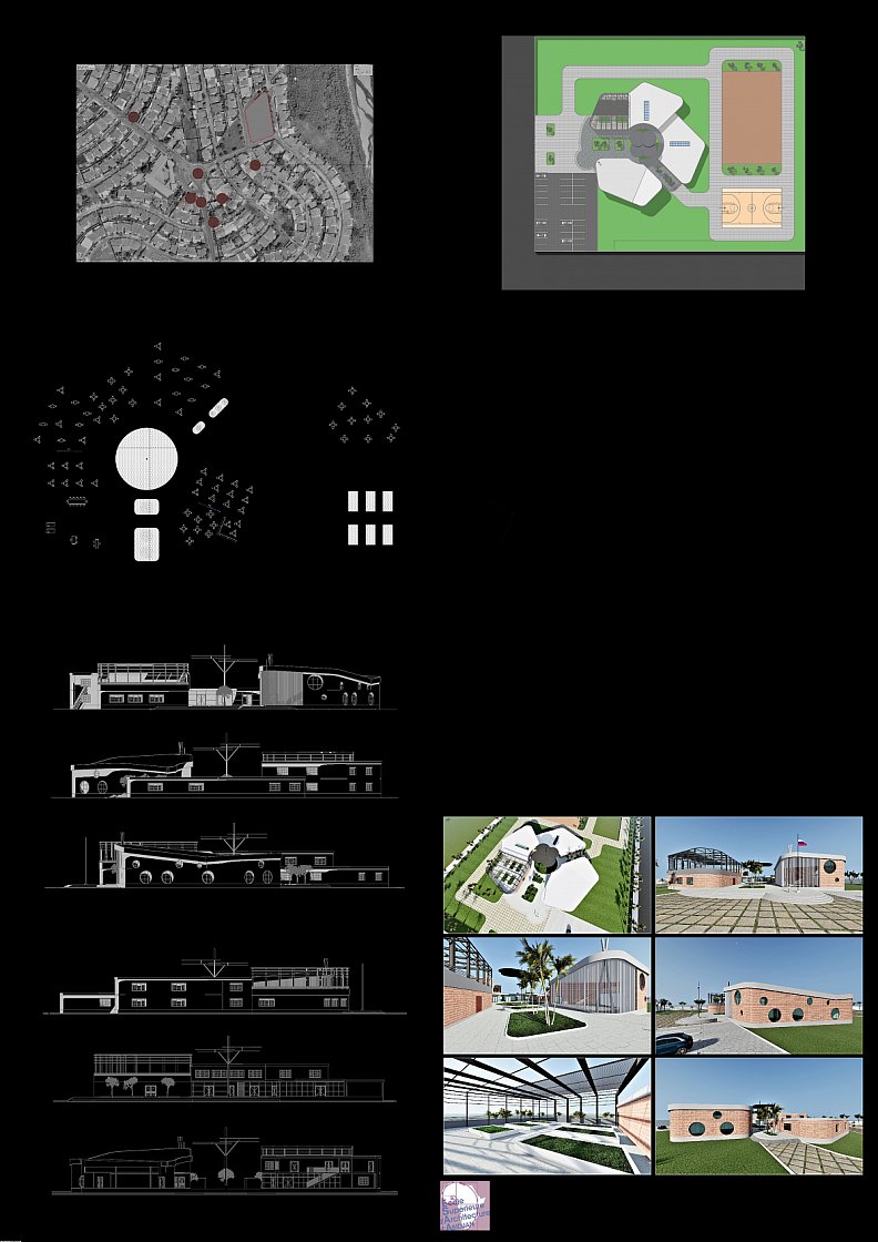The overall idea is to design a school in three independent blocks but at the same time close to each other, creating a communication link and a free access of circulation.