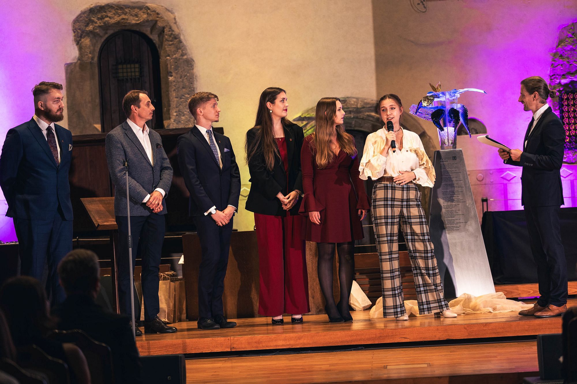 The winning team from Poland – Damian Gębarski, Weronika Ławniczak, Aleksandra Bugajska, Michał Cegliński, and Zuzanna Czesna – presented their excellent Zahrádky Castle Conservation Project.